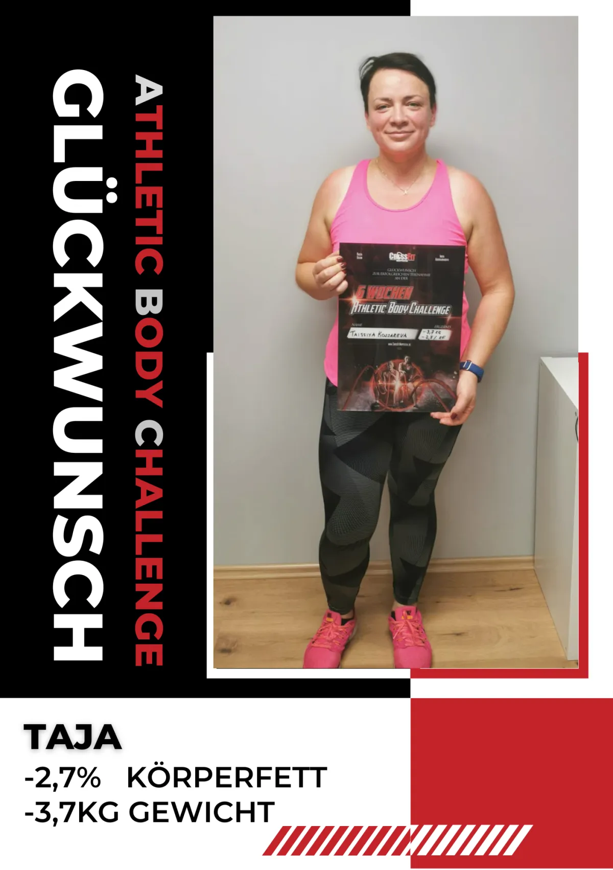 "Die Trainer und Teilnehmer waren immer da, um mich zu motivieren und anzufeuern. Ich habe nicht nur Gewicht verloren, sondern auch mein Selbstbewusstsein gestärkt. Diese Challenge hat mir gezeigt, dass ich alles erreichen kann, wenn ich mich darauf fokussiere. Ich kann es kaum erwarten, meine Fitnessreise fortzusetzen und noch mehr Erfolge zu erzielen.