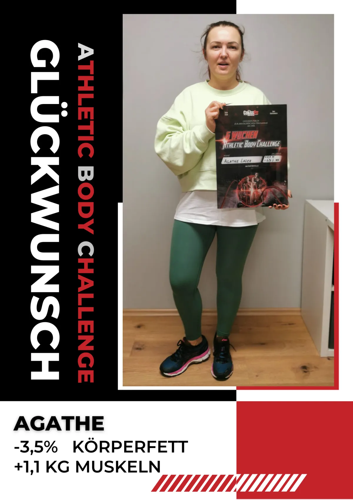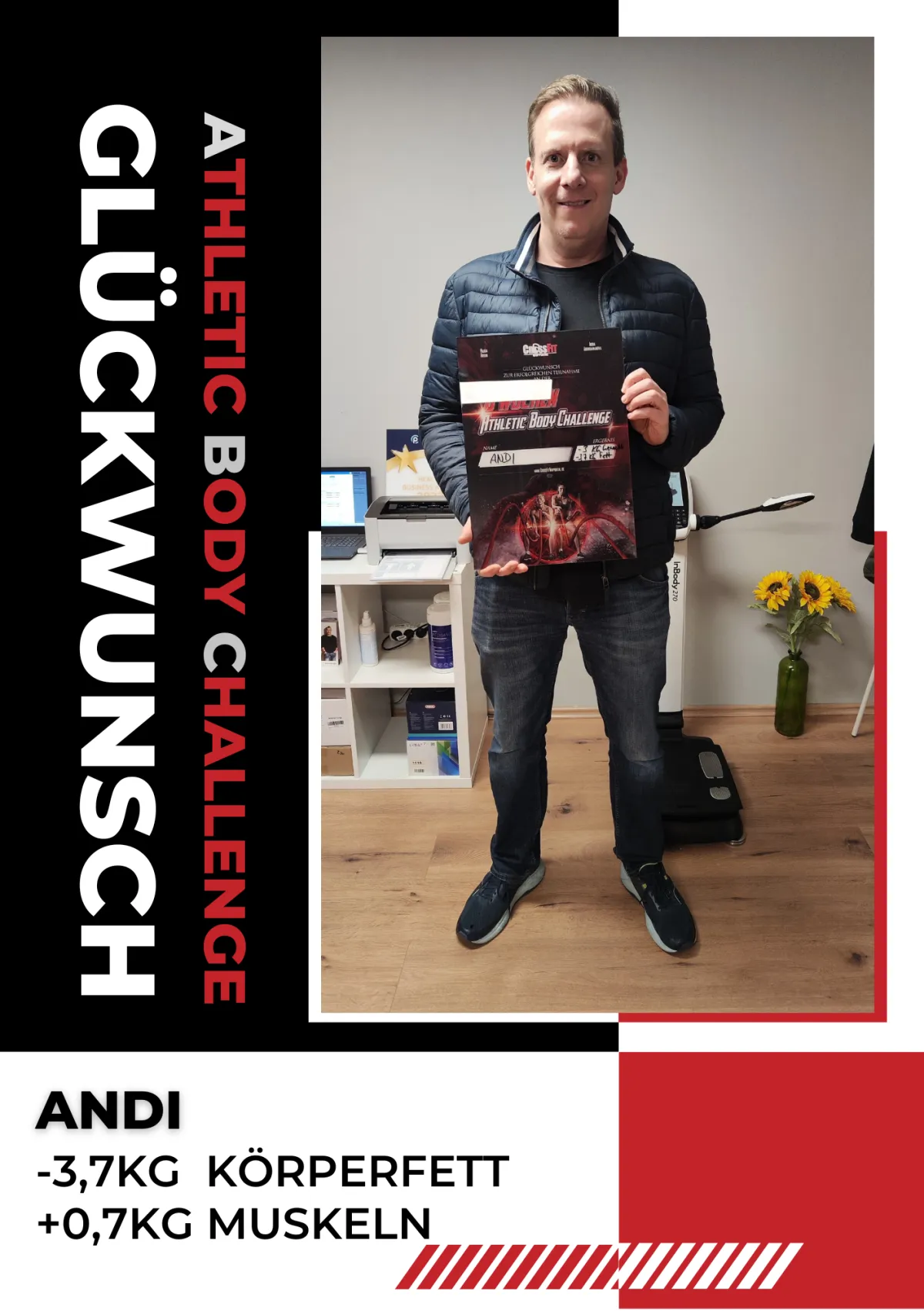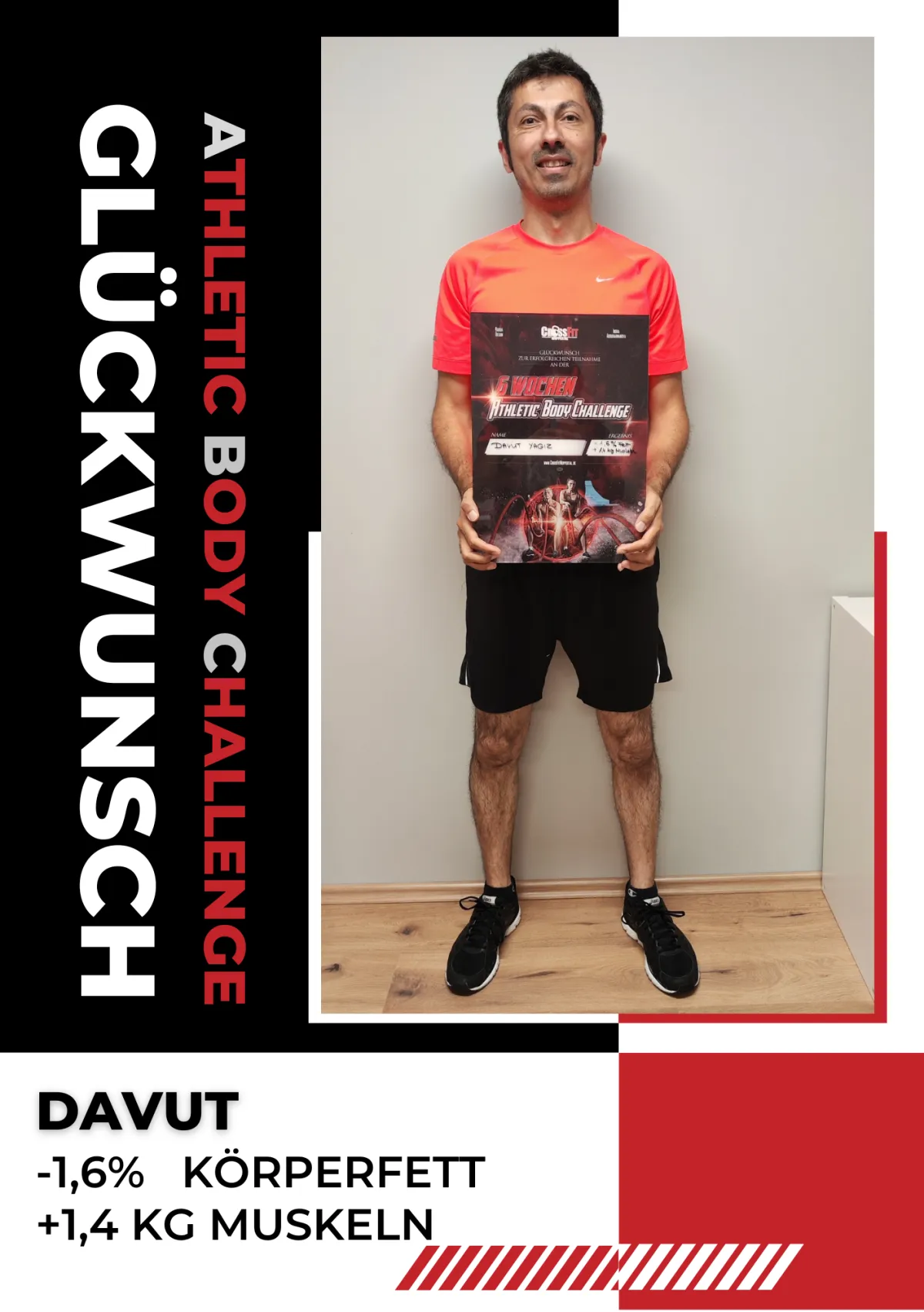 Heute fühle ich mich fitter, selbstbewusster und gesünder. Diese Challenge hat nicht nur meinen Körper, sondern auch mein Leben transformiert. Vielen Dank an das Team für diese unglaubliche Erfahrung!"